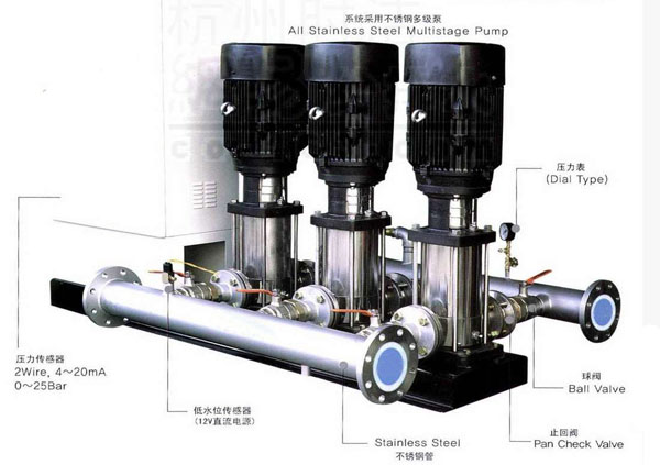 運(yùn)用當(dāng)今最先進(jìn)的微電腦控制技術(shù),將變頻調(diào)速器與電機(jī)水泵組合而成的機(jī)電一體化高科技節(jié)能供水裝置。變頻恒壓供水設(shè)備以水泵出水端水壓(或用戶用水流量)為設(shè)定參數(shù),通過微機(jī)自動控制變頻器的輸出頻率從而調(diào)節(jié)水泵電機(jī)的轉(zhuǎn)速,實現(xiàn)用戶管網(wǎng)水壓的閉環(huán)調(diào)節(jié),使供水系統(tǒng)自動恒穩(wěn)于設(shè)定的壓力值。